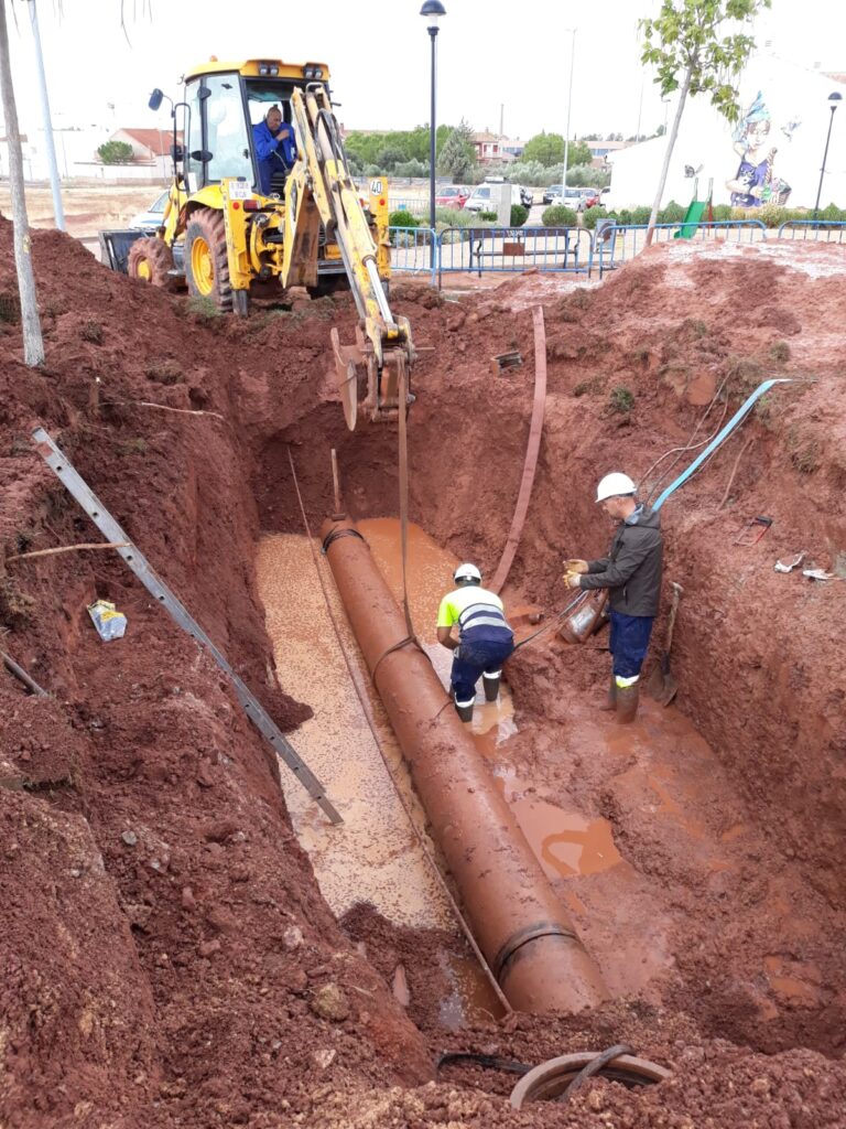 Se continúa con las tareas de reparación de la rotura en la Calle Juan Genovés. En este momento, y de acuerdo con la programación, se acaba de finalizar el proceso de descubrir la tubería y se ha empezado a sustituir el tramo roto, se prevé que aproximadamente en 3 horas se finalice la obra y se retome el llenado del depósito.