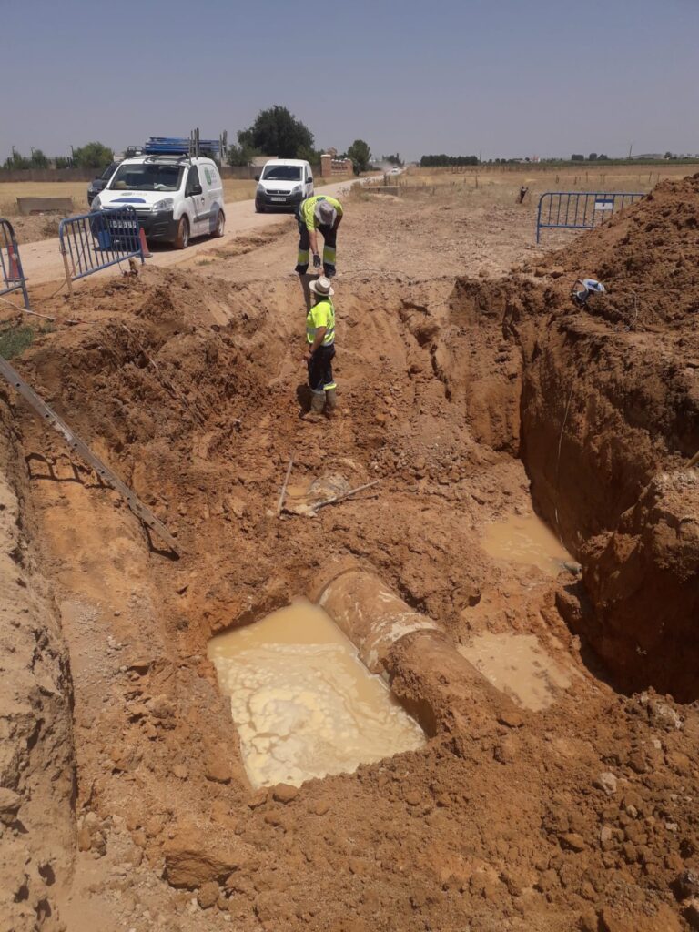 A las 22:15 horas los equipos de Aguas de Alcázar finalizaron la reparación de la tubería de 400 mm de agua potable que suministra agua al depósito de San isidro.